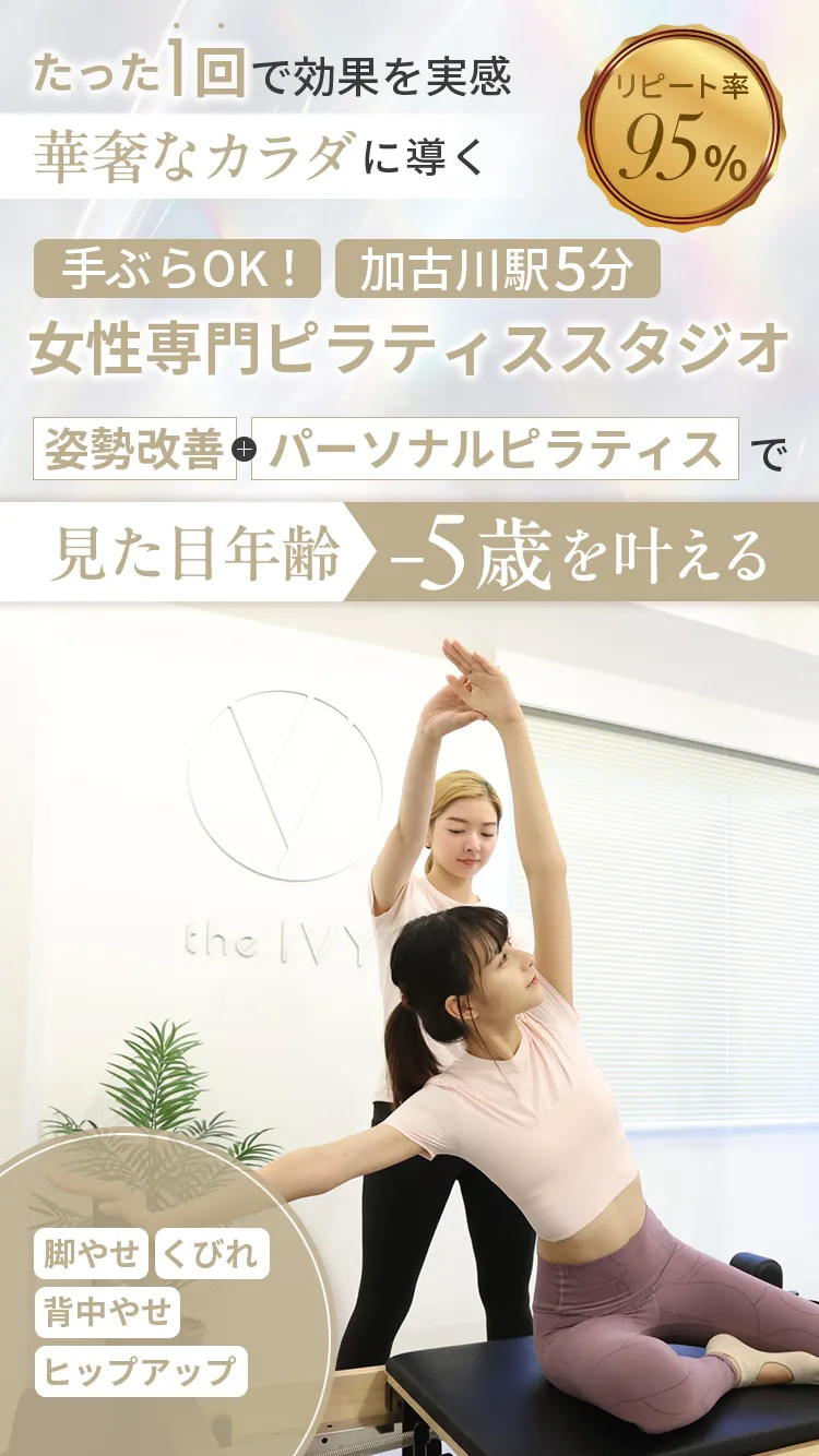 当スタジオのピラティスレッスンでは、華奢(きゃしゃ)なボディライン作りに特化。